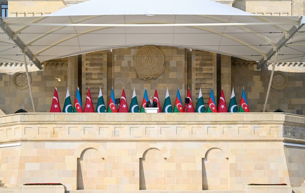 Bu qürur günümüzdə inanıram ki, hazırda Türk Dövlətləri Təşkilatındakı qardaşlarımız da bizimlə eyni coşqunu yaşayır. Zəfərimiz mübarək olsun! Allah Azərbaycanı və Türk dünyasını neçə belə Zəfərlərə qovuşdursun! Azərbaycanın sevincini bölüşən Pakistanın Baş naziri Şahbaz qardaşım başda olmaqla bu gün aramızda olan dost ölkələrdən bütün təmsilçilərə təşəkkür edirəm.