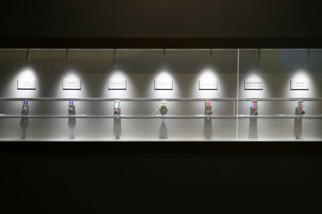 Azərbaycan əsgər və zabitlərinin igidliyinə, fədakarlığına və yenilməz iradəsinə həsr olunan “Qəhrəmanlar yolu” zalı isə ziyarətçilərə torpaqların azadlığı uğrunda aparılan mübarizənin ruhunu hiss etdirir. Burada Vətən müharibəsində iştirak etmiş qəhrəmanlara təqdim olunan orden və medalların nümunələri sərgilənir. Dəhlizi xatırladan “Qəhrəmanlar yolu” ziyarətçiləri xalqın birliyi və qələbə sevincini simvolizə edən növbəti zala aparır.