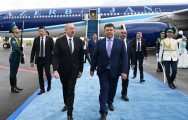 Azərbaycan Prezidentini Qazaxıstanın Baş nazirinin müavini Kanat Bozumbayev və digər rəsmi şəxslər qarşıladılar.